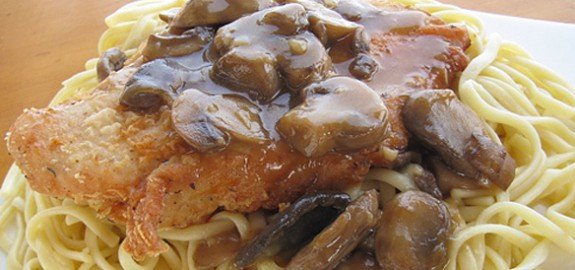 حال نوبت تهیه ی سس این غذاست : کره را در تابه ای ذوب میکنیم و سیر خرد شده را اضافه میکنیم و قارچ های حلقه شده یا برش زده شده را میریزیم و دو قاشق آرد اضافه میکنیم و به مدت نیم ساعت باید بپزد