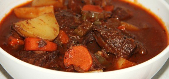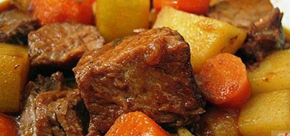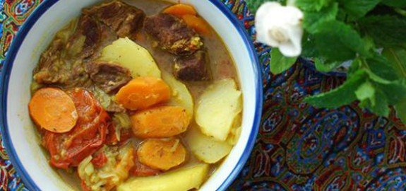 بعد از گذشت یک ساعت و نیم پخت شدن گوشت سیب زمینی حلقه حلقه شده و هویج حلقه حلقه شده و دارچین و سماق را به گوشت اضافه میکنیم