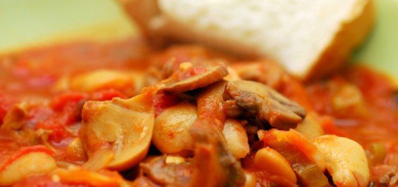 مرغ و پیاز و سیر باید یک ساعت بپزد و در این فاصله ما قارچ ها را که قبلا شسته ایم قطعه قطعه خرد میکنیم و نوع خرد کردن و هچنین استفاده از همه ی قسمت های قارچ سلیقه ای است من به شخصا تمام قسمت های قارچ رو برای این خورشت استفاده می کنم