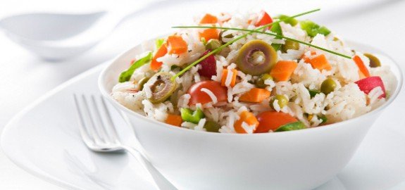 برنج آبکش شده و سبزیجات و مخلوط روغن زیتون را مخلوط میکنیم