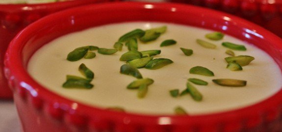 روی فرنی ها را با پسته خرد شده تزیین میکنیم