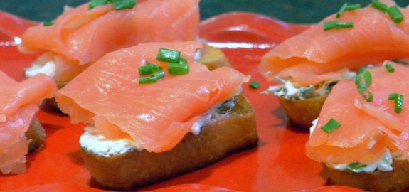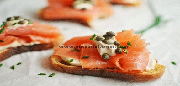 سالمون ها را برش میزنیم و روی هر نان تست چند تکه سالمون قرار میدهیم